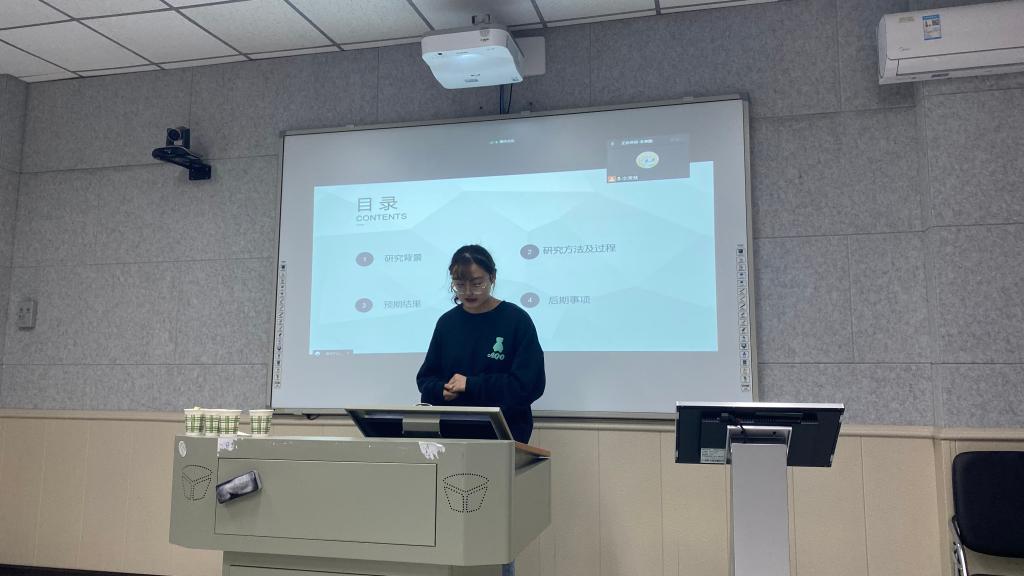 吴新丽同学从问题提出、文献综述、研究方法与思路以及预期结果和讨论四个方面进行汇报。以新冠肺炎疫情大流行为背景,在社会认同视角下,探讨社会认同对青少年幸福感影响的内部机制。提出了一个链式中介模型,使用问卷法进行研究。前瞻性地调查新冠肺炎大流行对青少年心理健康和生活满意度的影响。