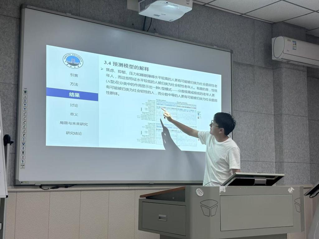 2025年4月20日晚7点整,本学期青少年网络心理与行为第六期例会在11教201正式开始,连帅磊老师、朱晓伟老师、甘雄老师、参加了本次例会,还有部分研究生和部分本科生也参与了本次例会中,会议现场气氛非常热烈。 本次例会我们有幸听取了三位同学的精彩汇报。首先,陶燕林同学分享了一篇2024年发表在《Mindfulness》上的文章,题为《Becoming Kinder to Yourself: Evaluating a 91Day SelfCompassion Journal》。该研究通过日记研究,探究91天自我同情日记对提升自我同情和幸福感的作用。研究采用随机对照试验,66名参与者被分入日记组和等待名单对照组。结果显示,日记组在自我同情和幸福感提升上更显著,多数参与者反馈积极,日记或可成为提升自我同情的低成本方式。 其次,饶仕杰同学分享了心理学报上的一篇文章,题目为《中国社会中“内卷”现象的个体心理内涵及其特征维度》,从文化心理学视角出发,通过4项子研究,采用访谈法和问卷调查法,明确了中国社会“内卷”的心理内涵与特征维度。研究发现,“内卷”包含资源稀缺、社会规范、心理压力和竞争行为四个维度,且感知越强,内卷行为倾向越高。 最后,张绍杰分享的文章—《Deciphering key features of social resilience versus social vulnerability in later life: A biopsychosocial model of social asymmetry》,通过分析中国和美国老年人数据集,利用多种算法探究老年社会不对称现象。研究发现,社会弹性老人更普遍,抑郁、焦虑、压力、睡眠障碍和人格是关键特征,据此可构建预测模型,为提升老人社会适应性提供理论依据。 每位同学汇报后,各位老师都进行了点评,并提出了详细的建议。到此,本期例会圆满结束,相信大家都收获满满,让我们一起期待下周的文献汇报吧!