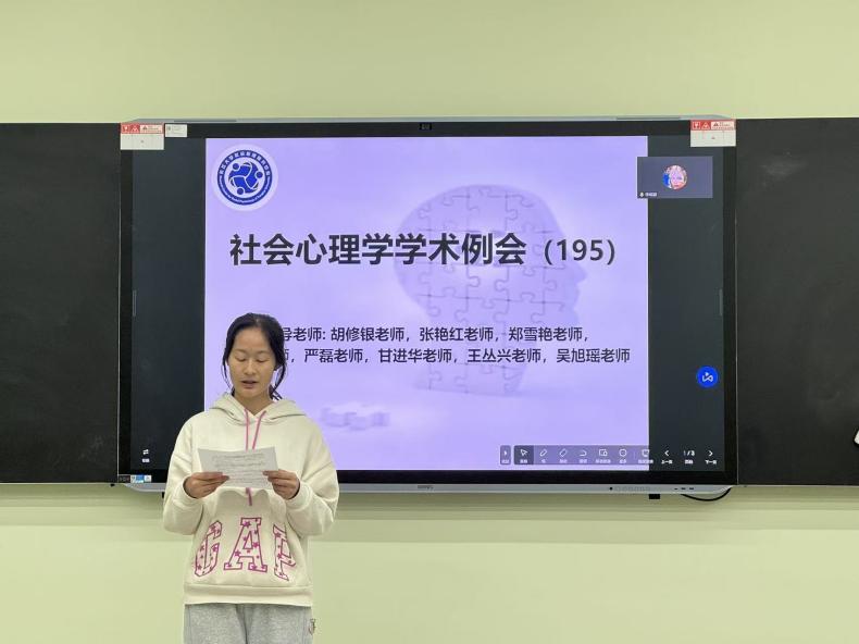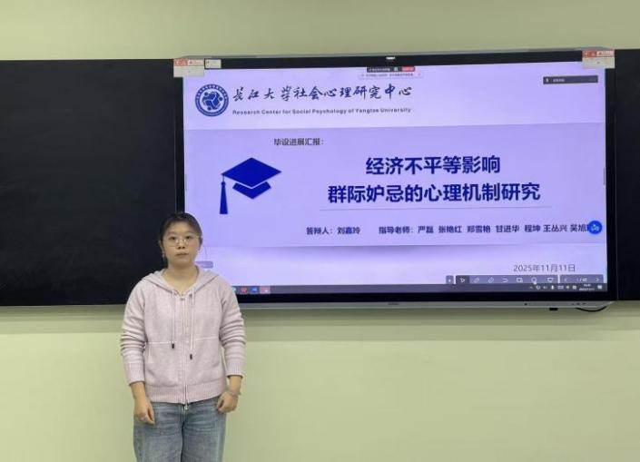 (通讯员:张立华)2025年11月11日19时00分至21时00分,第195期社会心理学学术例会在长江大学东校区16教A102室如期举行。本次例会采取线上线下相结合的形式,由本科生科研助理陈傲霜同学主持,主题为“毕业论文预答辩”。参加本次例会的老师有王丛兴老师、吴旭瑶老师和杨林川老师(三峡大学),学生有14位心理学研究生,20位本科生科研助理。 首先,刘嘉玲同学进行了毕业论文预答辩,其论文题目为《经济不平等影响群际妒忌的心理机制研究》。 刘嘉玲同学遵循“概念澄清﹣因果关系﹣机制探索”的思路,探究经济不平等影响群际妒忌的心理机制。她的研究包含三个部分:研究一采用访谈法、扎根质性研究和因素分析法,探明群际妒忌的概念内涵及测量工具;研究二采用实验室实验法,检验经济不平等影响群际妒忌的因果条件;研究三采用问卷调查和实验法,检验其中的心理机制。汇报的最后,刘嘉玲同学分享了其后续工作安排及待讨论的问题。 其次,李璐瑜同学进行了毕业论文预答辩,其论文题目为《学校认同对低阶层青少年抑郁情绪的影响:共生资源的中介及学业内卷感知的调节》。 李璐瑜同学立足于社会认同理论、社会认同影响抑郁的能动共生模型、规范焦点理论,采用问卷法与课程干预的研究手段,旨在深入探讨学校认同对低阶层青少年抑郁情绪的影响,以及共生的中介作用、学业内卷感知度对于抑郁情绪的调节作用。汇报的最后,李璐瑜同学分享了其后续工作安排。 教师点评环节,针对刘嘉玲同学的汇报,杨林川老师对其研究的理论创新价值进行了肯定,并提出几点疑问:(1)研究群际妒忌的原因以及群际妒忌的独特性;(2)群际接触在研究中的作用如何体现。王丛兴老师提出几点建议:(1)群际妒忌的概念界定需要进一步明确,以区分其与个体妒忌的界限;(2)研究方法与研究问题不匹配,建议采用实验法研究群际妒忌这种群体情绪。吴旭瑶老师提出了几点建议:(1)研究的实际范围是低阶层对高阶层的恶意妒忌,建议修改研究题目,明确研究范围;(2)研究模型中未充分考虑阶层流动、群体规模差异等因素。 针对李璐瑜同学的汇报,杨林川老师首先肯定了该同学的进步,并提出几点建议:(1)在做内卷干预时应有明确界限;(2)影响情绪的因素不止一个,在做干预时要考虑到一些变异情况。王丛兴老师提出几点建议:(1)要把社会阶层作为调节变量划分为低、高阶层进行对比,探究其显著性差异;(2)在后续干预过程中,要注意操作的规范性。 本次学术例会主要由研究生进行毕业论文预答辩。在此次例会中,老师们对同学们的汇报内容进行了相关指导,为她们后续研究的推进指明道路。至此,第195期社会心理学学术例会圆满结束,下周同一时间我们再会!