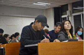 活动伊始,文晓武老师宣读了本次活动的目的及答辩规则,并强调本次活动是公平竞争,透明评分。此后报名三好学生标兵的同学开始答辩。答辩的同学在讲台上通过PPT进行自我介绍和个人辉煌成就展示。评委和学生代表们在台下观看,并给予打分。紧接着,班级代表上台竞选优秀班级体,一些班级通过制作的PPT向评委们展示班级风采,班级荣誉。最后李则俊老师在总结中希望同学们向先进看齐,努力在大学提升自己。