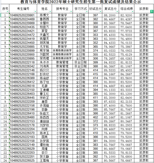 附件1:2022年硕士研究生招生第一批考生复试成绩及结果公示