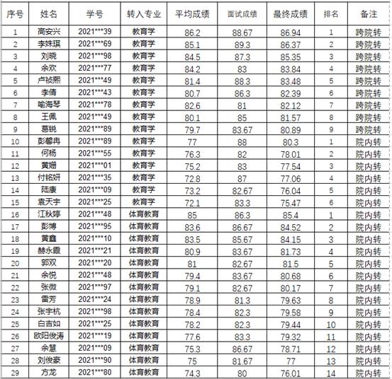 根据《长江大学普通本科生专业分流与转专业管理办法(试行)》(长大校发[2019]260号)文件以及教务处《关于2021级普通本科生秋季学期转专业工作的通知》要求,结合biwn必赢本科生秋季学期转专业工作方案的具体安排,我院于9月6日晚组织了对拟转入学生的面试。按综合学习成绩占70%和面试成绩占30%的比例进行成绩汇总,结合我院接收计划,经我院党政联席会讨论通过,现将拟接收学生名单予以公示: