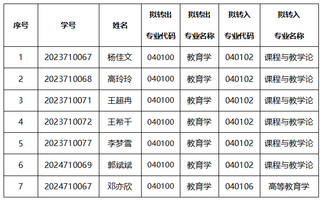 根据学校《长江大学研究生学籍管理办法(修订)》有关研究生转专业管理规定,杨佳文等7名研究生自愿申请由一级学科调整到二级学科,经学院审查,现将拟调整研究生名单进行公示。