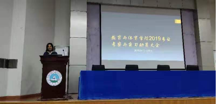 我院实践教学与实验室中心主任冯雪博士主持了此次动员大会,并首先就此次学院学生实习工作安排进行了简短的汇报和说明。说明包括,从10月28日开始,我院16级教育学和心理学专业本科生将展开为期八周的实习工作,届时61名学生将奔赴荆州实验小学,荆州实验中学,荆州市精神卫生中心等七家企事业单位进行实习。另外,我院18级教育学和心理学专业192名本科生也将于28日开始,在指导老师的带领下,赴荆州中学、荆州市创业学校,荆州市中小学社会实践基地等单位展开为期一周的专业考察工作。