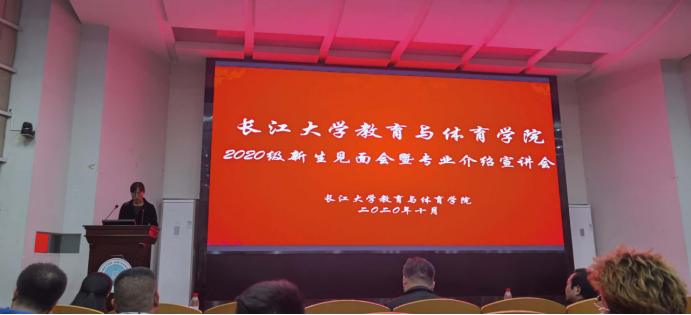 (通讯员 余若冰)2020年10月23日晚七点,我院2020级体育类新生见面会暨专业介绍宣讲在长江大学12号教学楼405教室正式举行。院长张相乐老师、副院长张艳红老师、副院长杜光友老师、党委副书记李则俊老师、师德标兵路国华老师、体育与教育系主任杨青宝老师、社体系主任孔祥魁老师、社体系户外运动专项主教练姜德昆老师、20级体育新生辅导员文晓武老师、新生班主任代表杨姗姗老师出席了本次大会,本次会议由副院长张艳红老师主持。