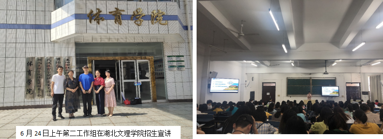 第二工作组由副院长张艳红带队,研究生导师徐发秀、王志伟老师一行3人于6月23日-24赴荆楚理工学院师范学院、湖北文理学院的体育学院、教育学院开展研招宣传活动。张贴海报,发放宣传册,徐发秀老师向有考研意向的学生作招生政策宣讲,张艳红院长和王志伟老师回答考生提问。工作组还与相关院系领导座谈交流,就研究生招生工作交换意见。