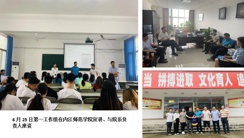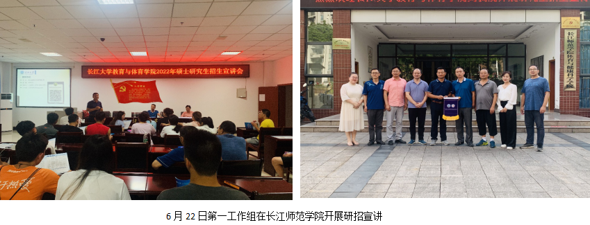 第一工作组由副院长杜光友带队,研究生导师宋永晶副教授及心理系主任朱晓伟博士一行3人,于6月22日至25日前往西南线的长江师范学院、重庆第二师范学院、重庆文理学院、内江师范学院4所高校开展研招宣传活动。第一工作组分别在长江师范学院体育与健康科学学院、重庆第二师范学院教育教师学院、重庆文理学院体育教育学院、内江师范学院的体育学院(教育学院学生亦一并参会)开展招生宣讲活动。招生宣传现场气氛热烈,学生们报考我院意愿强烈。