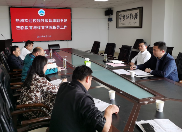 2022年4月13日下午,校党委副书记敖廷华在人事处副处长王辉的陪同下到我院调研指导工作。学院党委书记高明成、院长张相乐以及学院其他领导班子成员、各系主任、各科室负责人等参加会议。会议由高明成书记主持。
