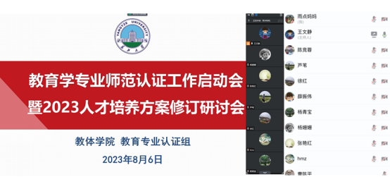 此次会议明确了教育学师范专业认证工作各专项小组的分工职责,将进一步推进建立高效自评自建组织体系、有序展开专业认证各阶段任务及近期专业人才培养方案修订工作。