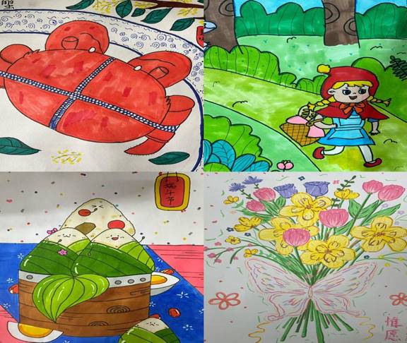5月31日,手工考核和绘画考试在13—D—124教室举行。学生自选主题在规定时间内进行现场手工制作,他们所展出的手工作品设计独特,制作精美,兼具观赏性和教育性。同时,学生的绘画考核按各自抽到的主题在规定的时间内进行创作,绘画考核内容主要有《大闸蟹》、《森林里的小红帽》、《端午节--粽子》、《送给妈妈的一束鲜花》等,学生们用画笔勾勒了精彩的世界,以色彩绘就美好未来。手工和绘画考核凸显了同学们的美术创作、环境创设等方面的专业能力。每件作品都独具匠心,风格各异,充分展示了学前专业学生们的技艺和才华。
