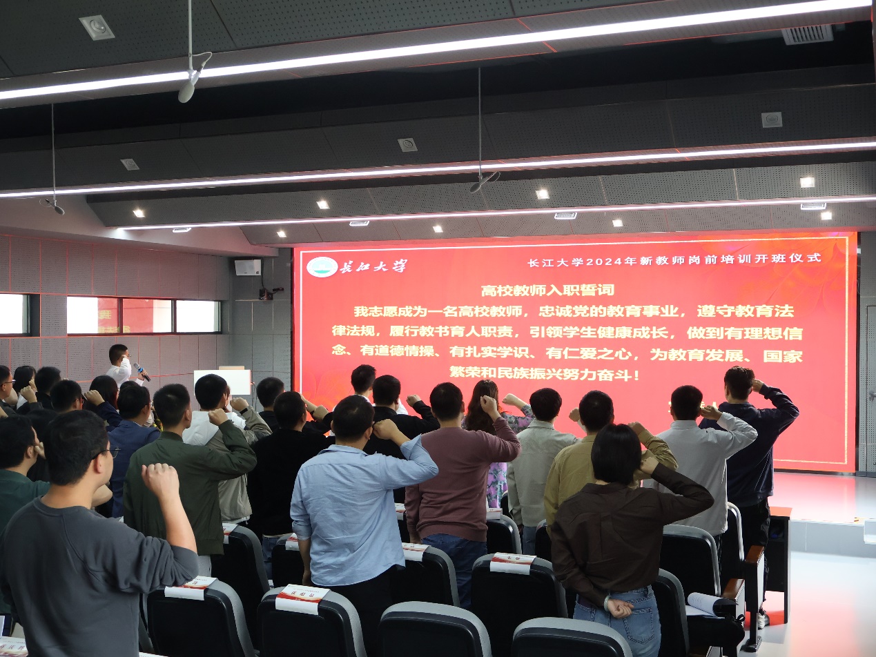 张艳红院长详细介绍了本次培训的相关工作安排,杨文星部长作开班动员讲话,代表学校领导班子对新进教师表示热烈欢迎和衷心祝贺。教师学员徐思雨代表全体参训学员发言并做出郑重承诺,教师学员王丛兴带领全体新进教师作入职宣誓。