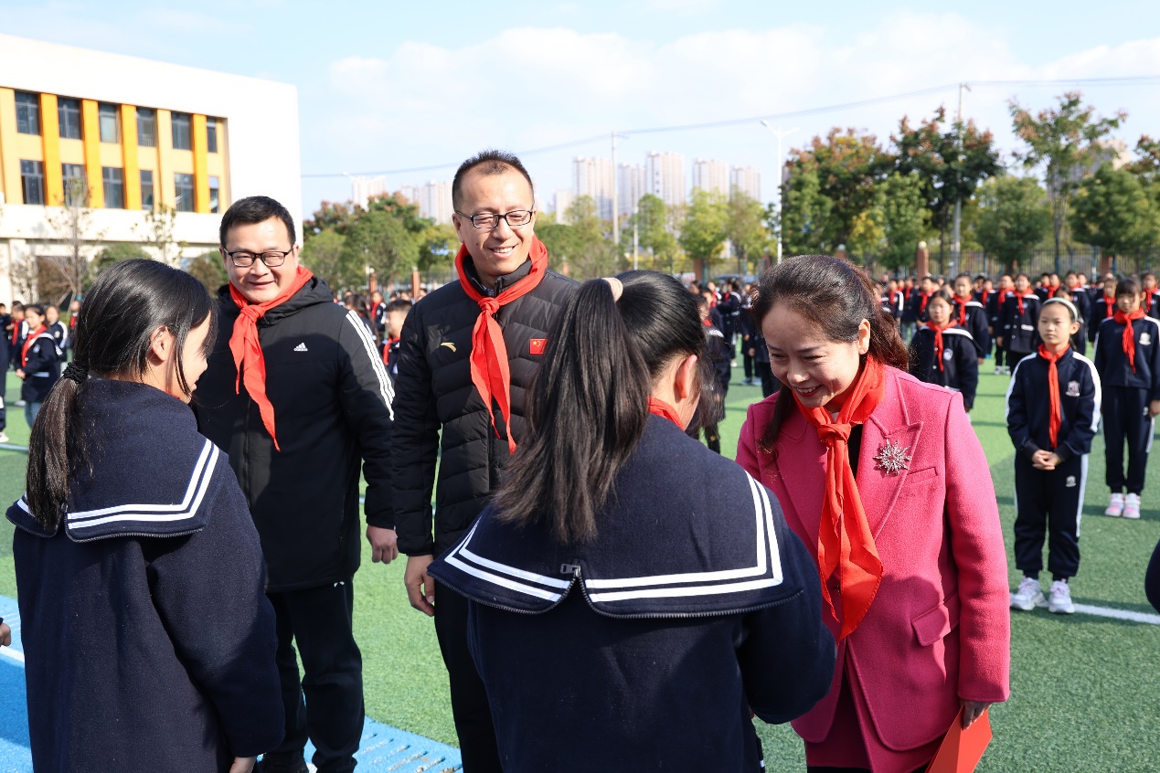 在精彩的舞狮表演中,活动拉开帷幕。长江大学高恒老师首先介绍出席本次仪式的领导老师,接下来,红门路学校少先队员为参会领导献红领巾。