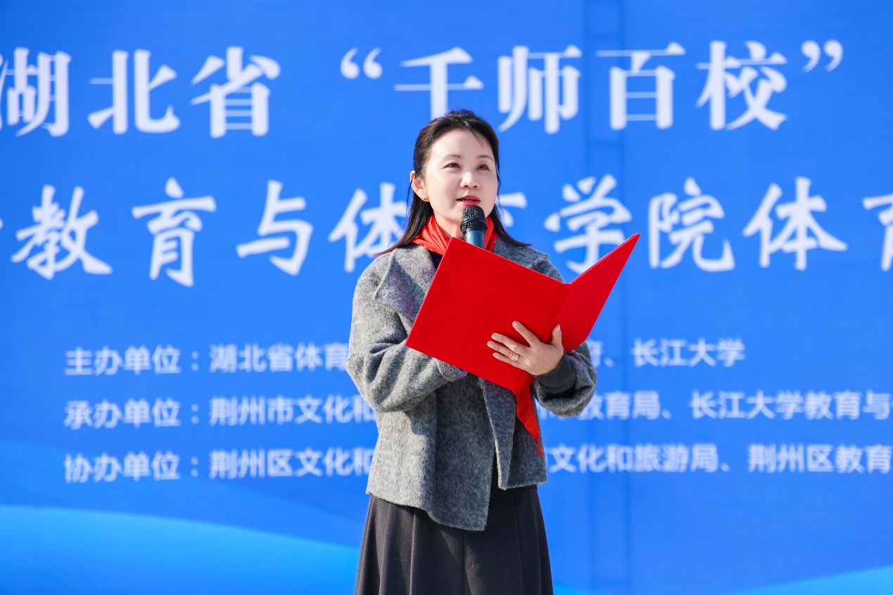 紧接着,由biwn必赢院长张艳红讲话。她提出,长江大学始终坚持立德树人的根本任务和健康第一的教育理念,为基层学校带去专业的体育教育。长江大学也将不遗余力地推动体育教育公平化,大力提高基础教育学校的体育教学水平。