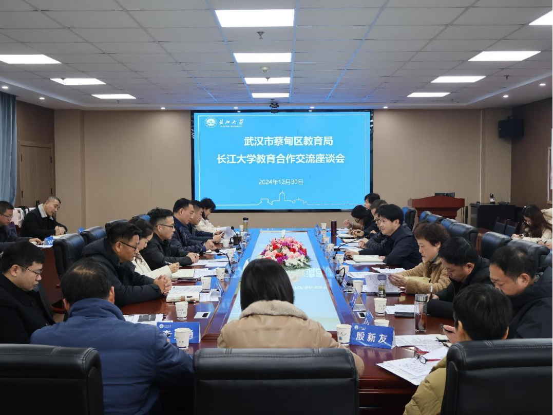 (通讯员:王小帅)12月30日,蔡甸区教育局局长常争、副局长曹江林和教育局相关科室负责人、蔡甸街道办负责人以及蔡甸六小和姚家林小学领导一行18人到访长江大学荆州校区及两所附属学校,武汉校区党工委书记崔青山、社会合作处处长彭飞、学生就业工作处处长徐波和学校师范专业相关学院领导参加交流座谈会,就校地合作事宜展开深入交流与探讨,社会合作处处长彭飞主持会议。