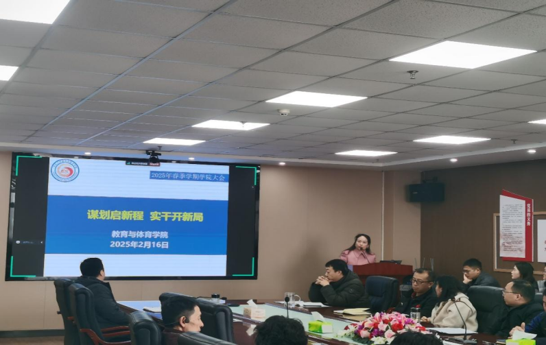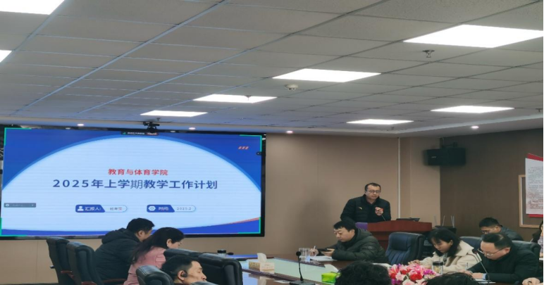 会上,副院长杨青宝围绕2025年上学期教学工作计划进行详细说明。他指出,新学期将重点从专业建设、课程建设、教研教改、学科竞赛和招生工作五大方面展开,旨在全面提升教学质量。在专业建设方面,重点推进运动训练专业的招生与培养方案的优化,并积极准备湖北省本科专业监测评估,力争2个专业优秀;在课程建设方面,全力支持《体育心理学》国家一流课程申报,并积极推进AI智慧课程和双语课程的建设;在教研教改方面,组织申报校级、省级教研项目,并培育省级教学成果奖,进一步提升教学研究的水平;在学科竞赛方面,全力准备湖北省青年教师教学竞赛,并积极培育国家级创新创业大赛项目;在招生工作方面,开拓优质生源地,确保现有专业的招生质量稳步提升。杨青宝副院长特别强调了新学期教学工作的注意事项,确保新学期教学工作的有序开展。