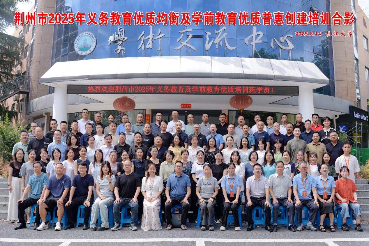 2025年8月14-15日,为期两天的“荆州市义务教育优质均衡及学前教育优质普惠创建培训”在长江大学西校区学术报告厅圆满落下帷幕。本次培训由荆州市教育局主办、长江大学承办,汇聚全市九个县市区90名教育工作者,围绕新时代教育发展的核心任务,通过专家讲座、视频学习、研讨交流等形式,深化教育理念、明晰实践路径,为荆州市教育高质量发展注入强劲动力。