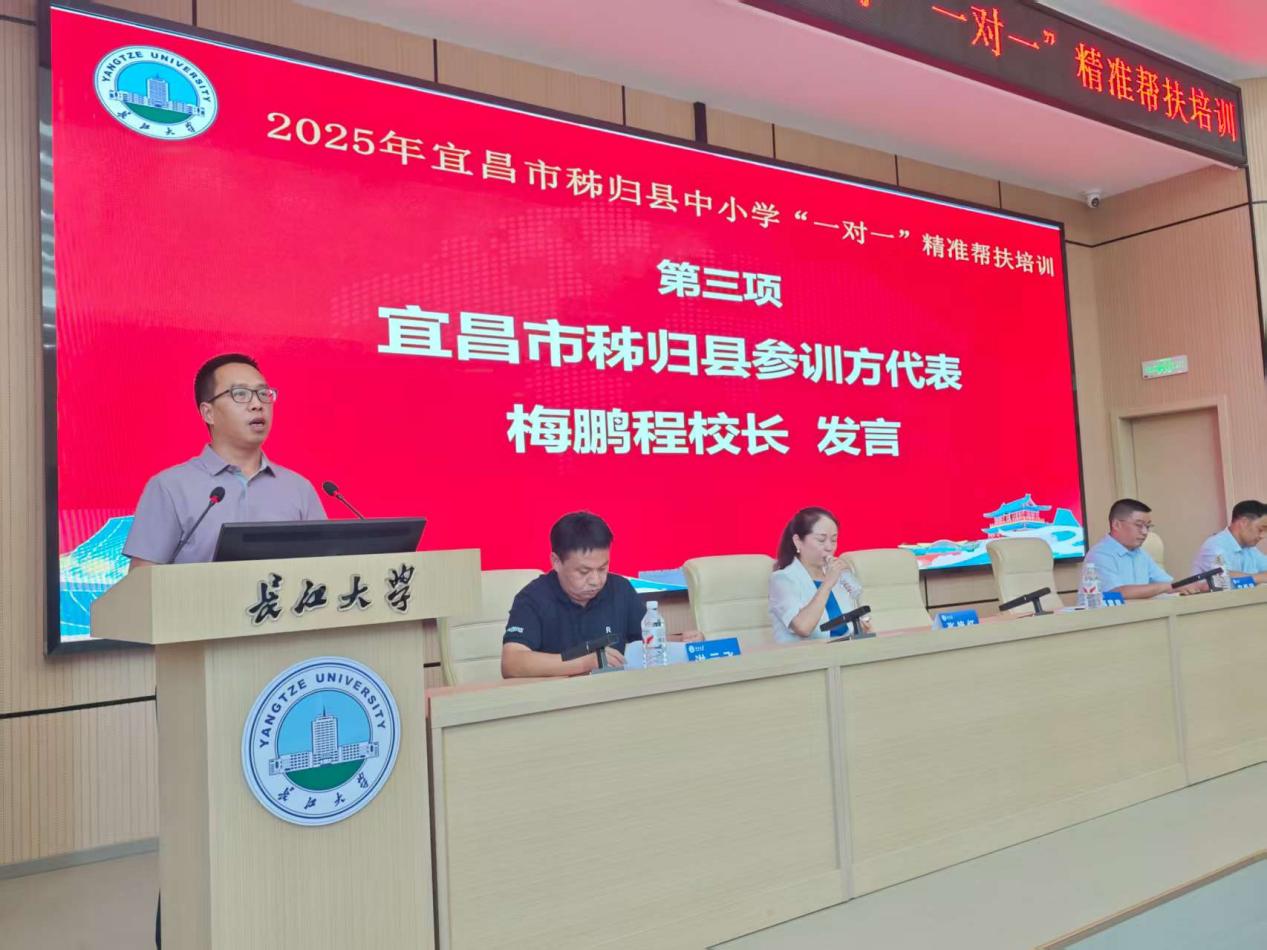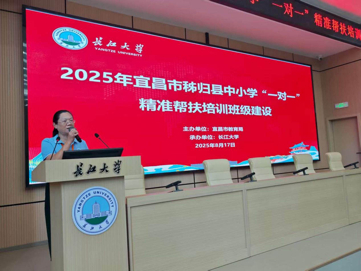 2025年8月17日下午,宜昌市秭归县中小学“一对一”精准帮扶培训开班仪式在长江大学东校区11教报告厅顺利举行。本次培训由宜昌市教育局主办,长江大学承办,旨在通过“一对一”精准帮扶模式全面提升秭归县中小学教师的专业能力,有力促进教育领域的优质均衡发展。开班仪式由长江大学教师教育学院副院长宋永晶主持,与会人员包括秭归县三所初级中学校长、长江大学相关部门负责人及60名参训教师。