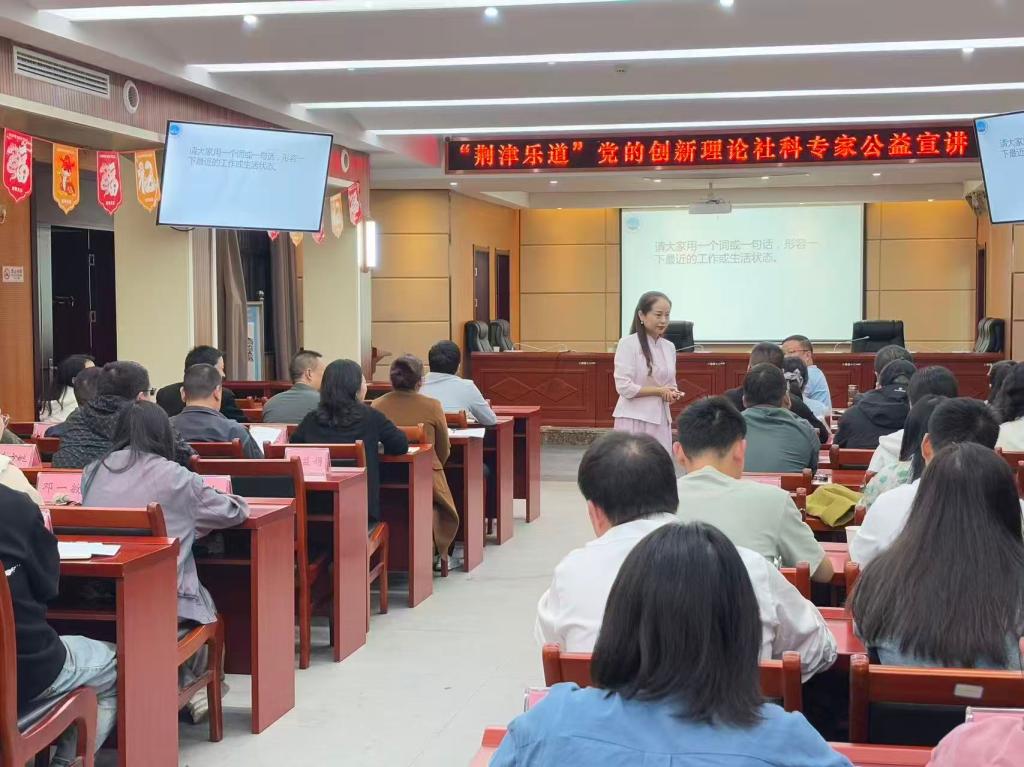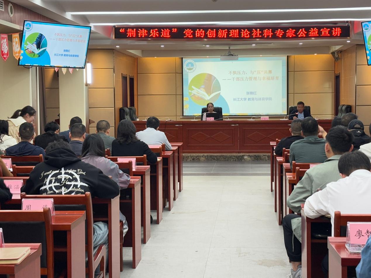 (通讯员:李咏颖)9月23日,为缓解松滋市党员干部压力,提高工作与生活幸福感,我院张艳红教授作为荆州市“荆津乐道”党的创新理论社科专家成员赴松滋市人社局,为全市党员干部带来“压力管理与幸福培育”的精彩分享。讲座主要从正确认识压力、探寻压力来源与压力管理策略三个方面开展。