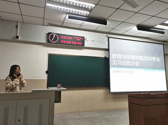 大会伊始,冯雪老师和徐发秀老师为同学们介绍了本次见习的任务及内容,帮助同学们熟悉见习流程,明确见习目的。随后,张艳红副院长致辞。张院长提出了“双重管理”的要求——要求同学们在校服从我院管理,在见习期间服从实习单位管理。接着,张院长强调了“两个意识”,即纪律意识和安全意识,希望同学们“立德树人,以身作则”,为学生树立榜样,同时注意防疫安全和路途上的交通安全。最后,张院长向大家提出“两个希望”,希望同学们在实践中检验和巩固自己的理论知识,同时提升自己的教学专业技能;希望大家能提升自己的综合能力,将见习当做试金石,开心而去,平安而回。在掌声中,本次大会圆满结束。