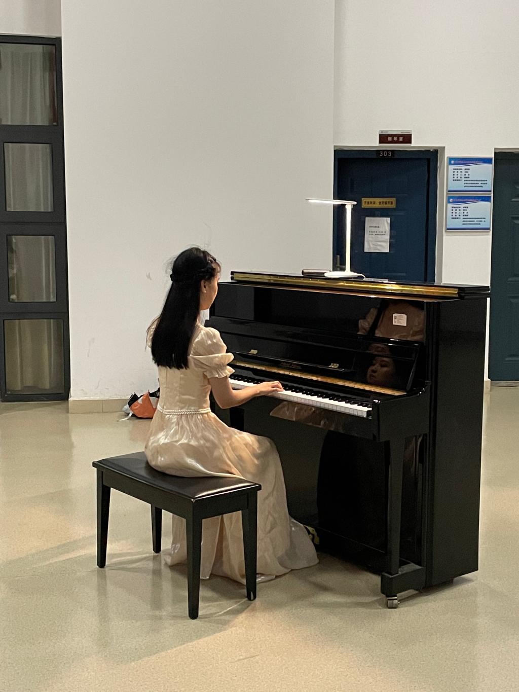5月25日,钢琴考核在文科大楼三楼大厅举行,共计展演了36首钢琴曲目,其中包括《A小调圆舞曲》、《俄罗斯波尔卡》、《梁山伯与祝英台》、《瑶族长鼓舞》等名曲,钢琴考核中同学们能够流畅地弹奏歌曲,正确表达作品的风格和情绪。