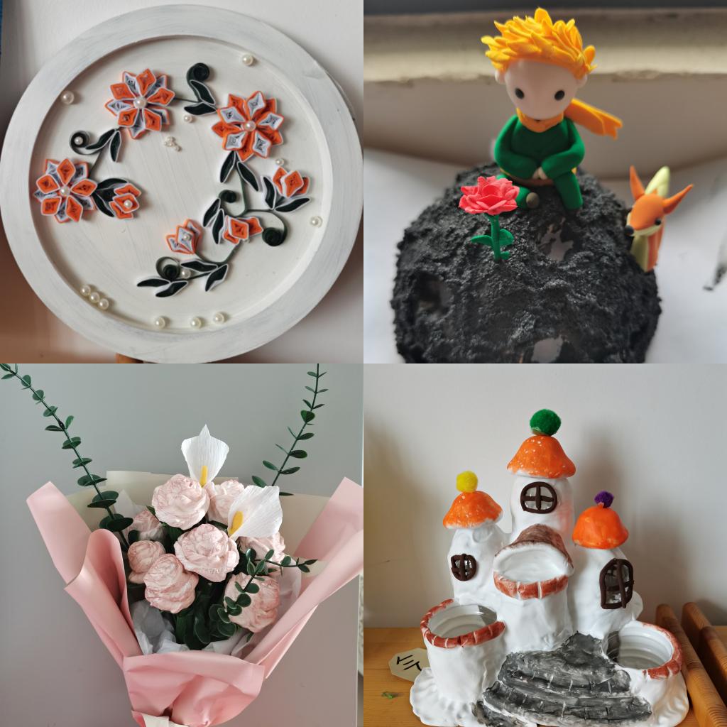 5月18日,手工考核在文科大楼910举行,学生自选主题在规定时间内进行现场创作,他们所展出的手工作品设计独特,制作精美,兼具观赏性和实用性。