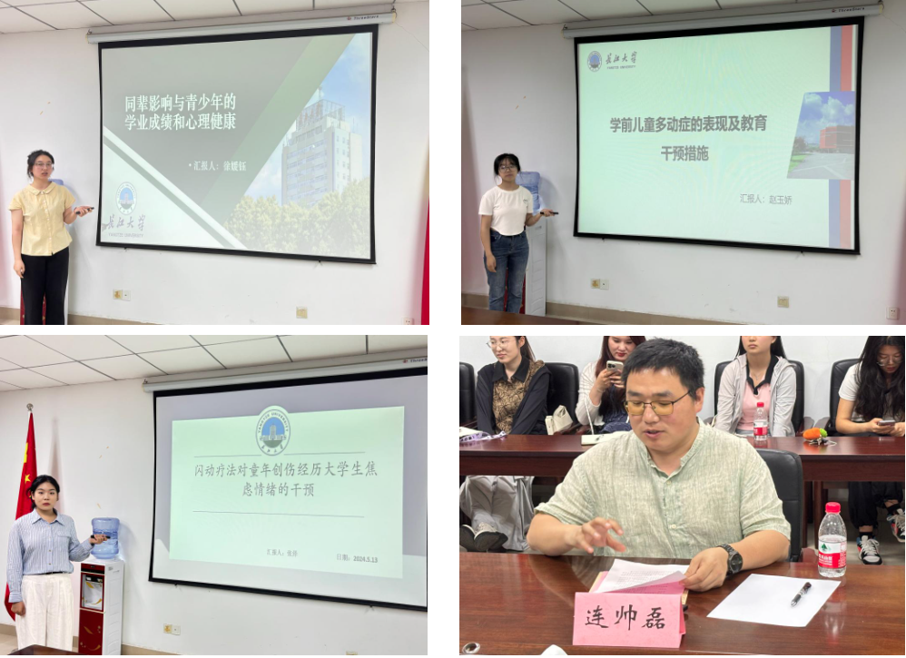 随后,biwn必赢的三位同学也进行了分享。徐媛钰同学则以《同辈影响与青少年的学业成绩和心理健康》为题,分析了提高班级内学生能力的多样性,不仅有利于每一位同学能力的提升,而且不会给心理健康造成负面的影响。赵玉娇同学以《学前儿童多动症的表现及教育干预措施》为题,从心理干预治疗、医教和家庭系统疗法、康复治疗等方面展开分析,教育干预有利于学前儿童多动症的治疗与愈后。张泽同学以《闪动疗法对童年创伤经历大学生焦虑情绪的干预》为题,展示了闪动疗法对童年创伤经历大学生的焦虑情绪改善有重要意义。各位嘉宾老师们对五位主讲人的汇报分别进行了详尽的点评,并给予了实质性的建议。