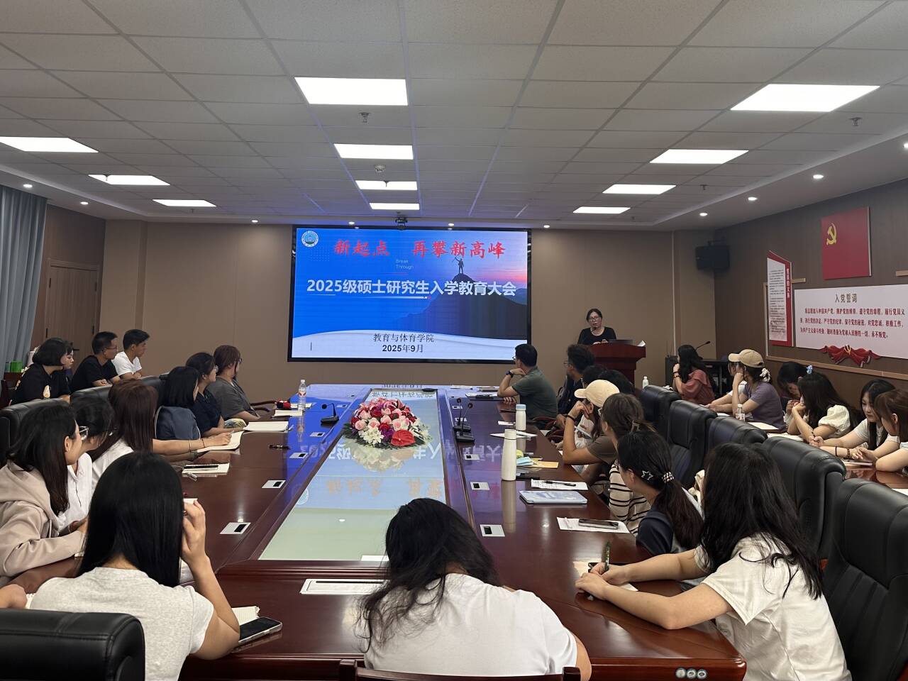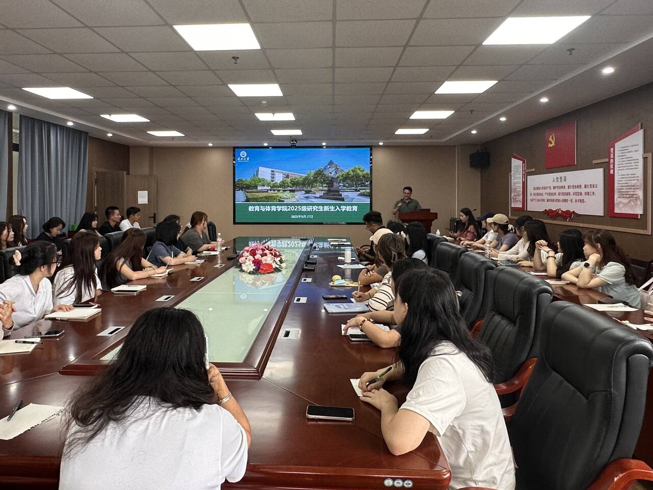 2025年9月17日下午,我院2025级研究生新生见面会在文科楼905会议室举行。学院党委副书记何可可、研究生教学秘书卢小琴、研究生辅导员顾志辉与2025级全体新生齐聚一堂,共同开启研究生阶段的崭新篇章。