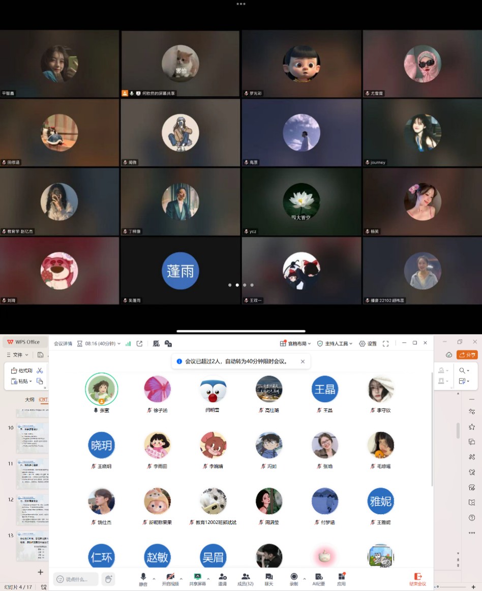 会议伊始,会议负责人通过线上屏幕共享,向同学们详细解读了《关于2025年国庆节、中秋节期间教学安排调整的通知》,明确10月1日至8日放假调休,共8天,同时提醒大家注意9月28日(星期日)和10月11日(星期六)的教学安排调整,确保假期前后教学秩序正常衔接。