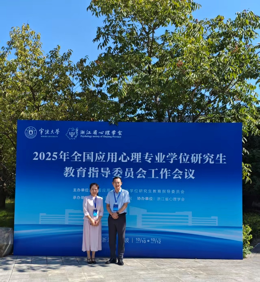 (通讯员:周瑶)2025年10月10日至12日,2025年全国应用心理专业学位研究生教育指导委员会工作会议在浙江宁波成功举办。本次会议由全国应用心理专业学位研究生教育指导委员会主办,宁波大学教师教育学院承办、浙江省心理学会协办,会议旨在贯彻落实教育部相关文件精神,加快推进新时代应用心理专业学位研究生教育高质量发展。我院院长张艳红、院长助理严磊受邀参会,与全国应用心理教育领域专家学者共话专业发展。