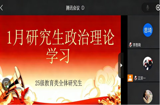 (通讯员刘琦)2026年1月12日至30日,长江大学25级教育类全体研究生围绕“凝心聚力开新局 奋楫扬帆再出发”主题,开展1月政治理论学习。本次学习以班级班会集中研学、分组讨论为主,课余时间个人自学为辅,旨在引导研究生深刻领会党中央重大决策部署,准确把握经济社会发展新趋势,把思想和行动统一到党和国家中心工作上来,以饱满精神状态迎接新学期科研任务。
