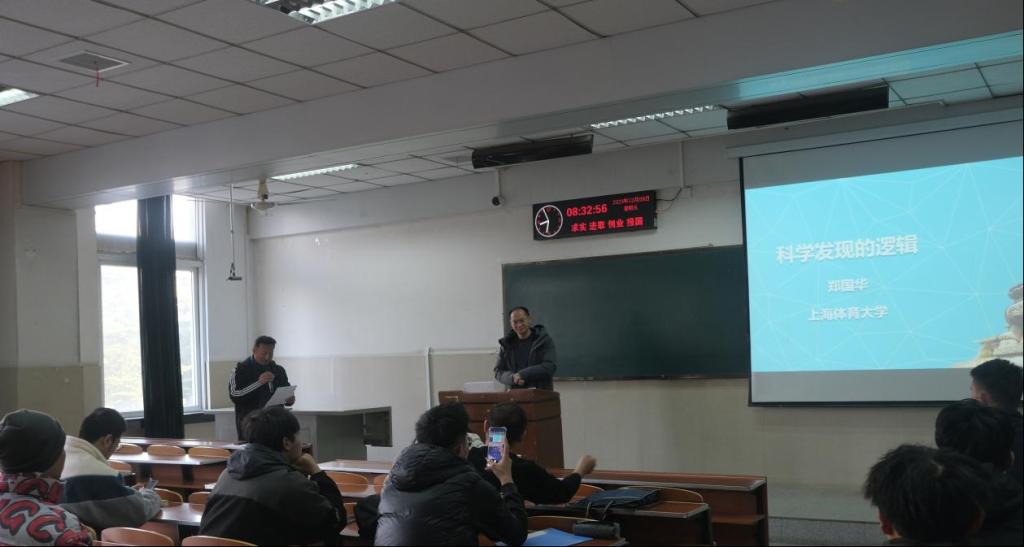 (通讯员:张泽)12月8日上午,我院在12教203举行了“长大20年”学术论坛暨长江教育与体育讲坛(2023年第10讲)。本次讲坛特邀上海体育大学郑国华教授作为主讲,讲座题目为《科学发现的逻辑》。参加本次讲座的有副院长宋永晶副教授、研究生教学秘书卢小琴老师,体育方向的三十余名研究生及部分其他学院师生。我院杜光友副院长主持了本次活动。