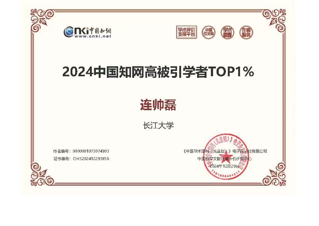 我院两教师入选“2024中国知网高被引学者TOP1%”