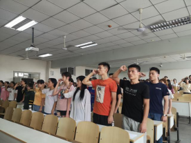 会议伊始,学生会组织部部长陈博文同学致开场辞,为大家详细介绍了本次学习的主要流程。接着,组织部郭钰菲同学以节目——诗朗诵《一句话》为引,拉开了此次学习的序幕。为了让大家了解当今国际时事,陈博文同学用PPT向同学们展示了《中美贸易摩擦的缘起、影响和未来走向》等学习材料;接着,大家的视线转向国内,在主讲人的带领下了解了当前香港问题,以及有关香港问题的三点意见;最后,大家一起学习了冯征校长在2019年暑期工作研讨会上的讲话,明确了我校新学期工作的大致方向与部署。学习完材料后,进入了表达与交流环节。同学们纷纷表示要从小事做起,完善自身,用自身的进步为国家的进步添砖加瓦。随后,团委书记文老师总结发言,为青马学习小组后续的组织学习提出指导意见。最后,由陈博文领誓,同学们集体起立宣誓。在庄严的宣誓声中,本次学习活动圆满落幕。