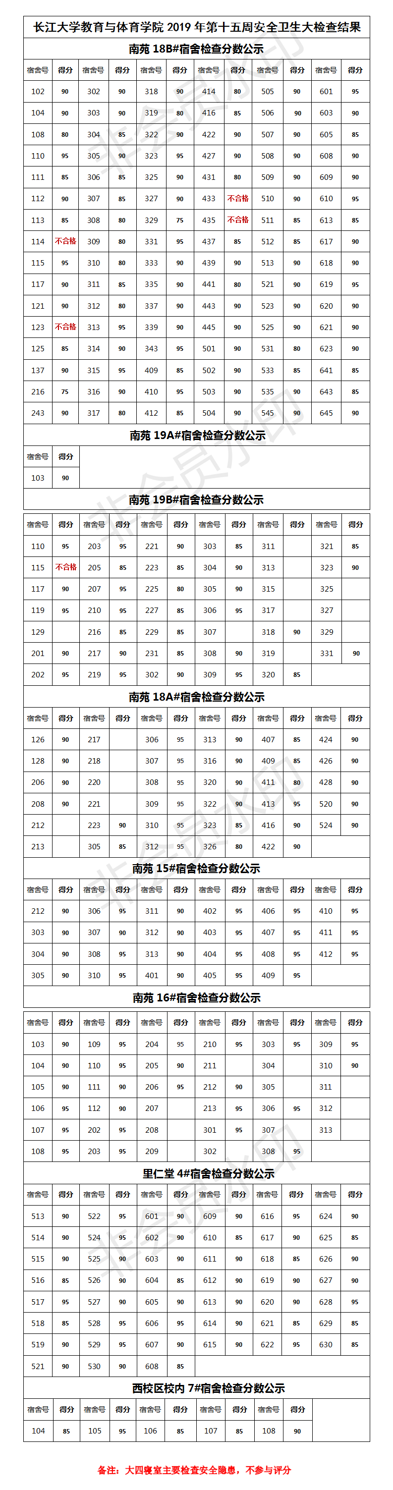 我院2019年第十五周安全卫生大检查结果公示