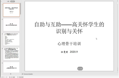 此次培训旨在帮助骨干们辨识高关怀学生,及时识别心理危机,正确干预心理危机,做好报告和监护工作。