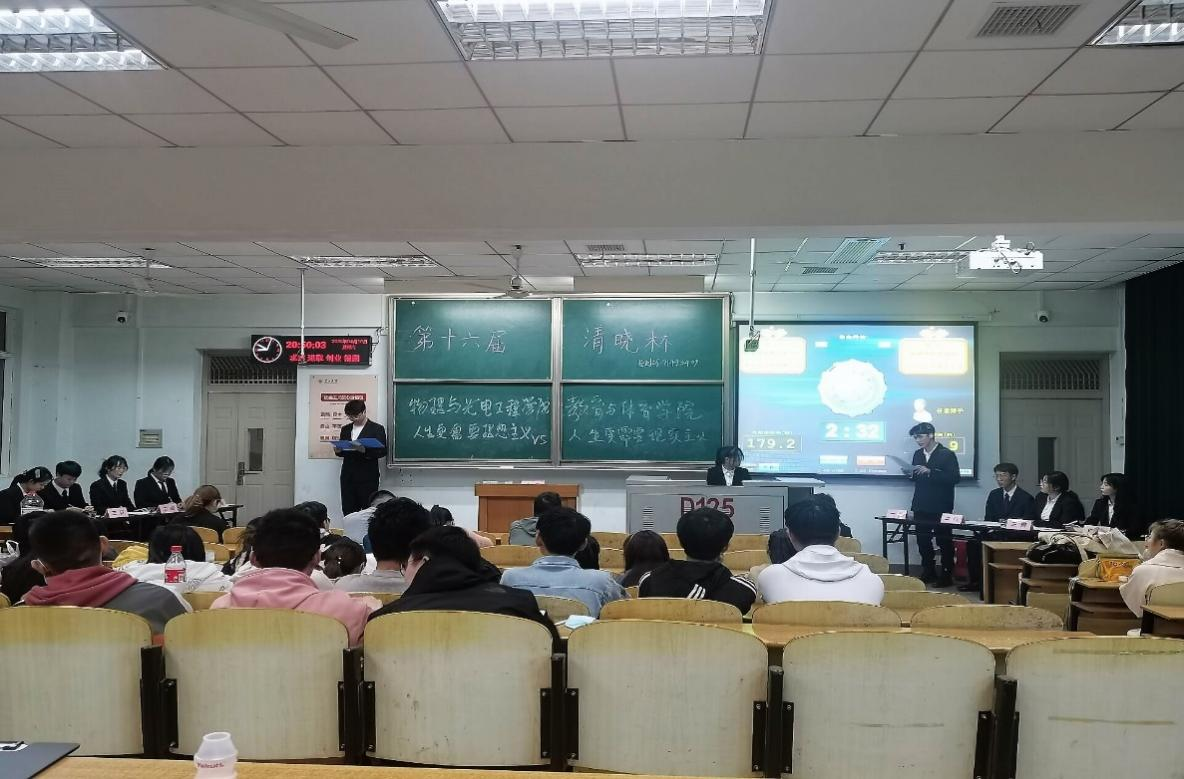 (通讯员 蔡彪)4月10日晚8时,长江大学2021年“清晓杯”辩论赛首轮比赛在长江大学东校区13教D-125打响,物理与光电学院和我院选手作为本场比赛的正反方辩手就“人生更需要理想主义”、“人生更需要现实主义”辩题展开了激烈辩论。