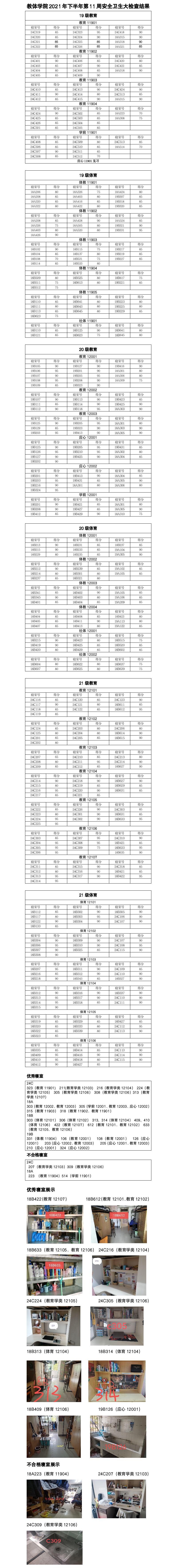我院2021年下半年第11周安全卫生大检查结果