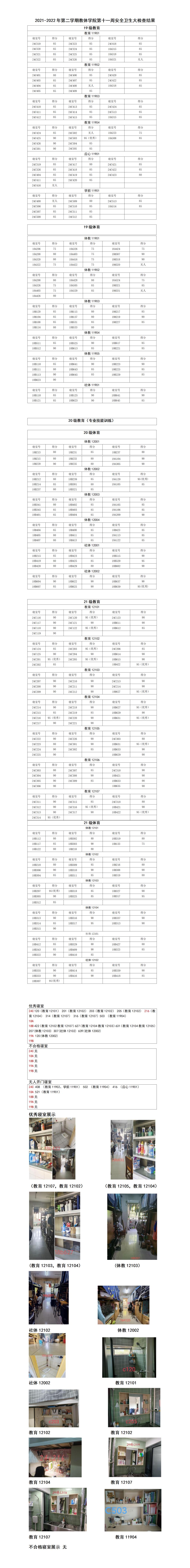 2021-2022年第二学期我院第十一周安全卫生大检查结果