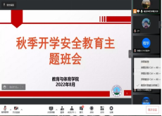 为做好校园疫情防控,响应学校学生分批次来校报到、到校后严格管控、统筹推进常态化疫情防控和秋季平稳推进开学工作的号召,确保我院秋季学期开学相关工作平稳有序开展,8月23日-25日,我院以班级为单位,年级辅导员牵头,班主任参与,利用腾讯会议、QQ、微信等形式,组织全院学生召开2022年秋季开学学生返校安全教育专题班会。