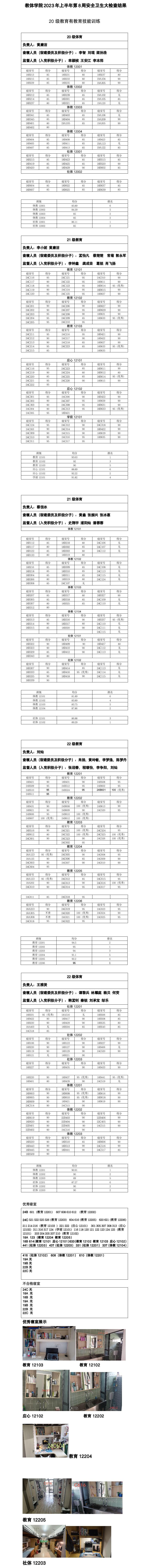 我院2023年上半年第8周安全卫生大检查结果