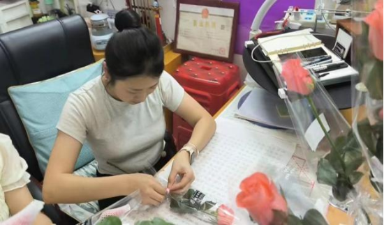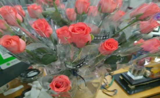 中午12时,学生会成员陆续到达南苑,开始修剪、包装玫瑰花,同学们小心翼翼地拿起带刺的玫瑰,除去多余的叶子,再仔细包装,每一朵花都寄托着同学们对老师的深厚感情。下午1时,所有鲜花打包完成,同学们带着娇艳欲滴的鲜花,分别前往教学楼、训练馆和办公室,给老师们送去惊喜与感恩。