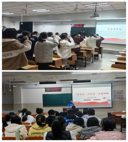学院组织各班进行以“学宪法,讲宪法”为主题的班会活动,主要内容包括宪法基本精神及特征、学习宪法目的与意义、新时代青年当如何弘扬宪法精神。学院通过主题班会,对宪法进行了普及,让同学们深入了解宪法,更好地领悟宪法精神。