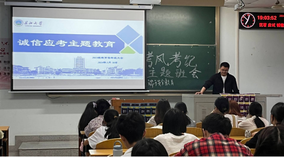 【通讯员曾雪晨】随着四六级考试和期末考试不断临近,为了让同学们认识到诚信的重要性,树立正确的考试观念,培养良好的学习习惯和道德品质,促进学生的健康成长,biwn必赢各班级于5月30日召开了“诚信应考”主题教育班会。会议由各班班主任和班长主持,全体同学参加。