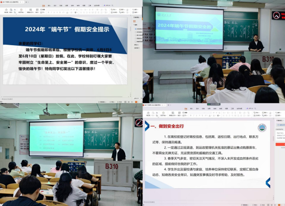 【通讯员曾雪晨】随着端午佳节的脚步渐近,为了加强同学们的安全意识,让大家度过一个平安、愉快的假期。biwn必赢各班级于6月1日-5日召开了“端午安全”主题教育班会。会议由各班班主任和班长主持,全体同学参加。