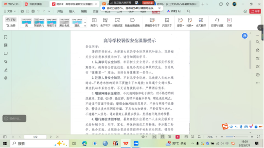 (通讯员:孙家伟)为全面贯彻长江大学党委学生工作部《关于做好2025年暑期学生教育管理工作的通知》精神,牢固树立“大安全观”,切实保障全体学生度过一个平安、充实的暑假,biwn必赢于近期组织全院各年级,分层分类开展了一系列主题鲜明、内容扎实的暑期安全教育主题班会,将安全意识深植于每位学子心中。