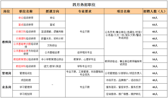 为了更好为社会全体提供优质的公考培训服务,更好得搭建公司内部师资人才梯队,现向社会全体和各大高校广纳人才,引荐优秀的力量!