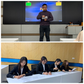 本次辩论赛共分为开篇立论与质询、盘问环节、自由辩论、总结陈词四个环节。首先,对方代表队的正方陈述观点:“为了更好的维系感情应该改变自己”,反方代表队就“做出改变不是改变自己”展开论述。在随后的盘问环节中,双方更是争锋相对、步步紧逼,现场气氛迅速升温,达到白热化阶段。尤其在最精彩的自由辩论环节,选手时而妙语连珠,诙谐幽默,掌声不断。比赛进入总结陈词环节。反方四辩陈硕灿清晰的思路和巧妙的陈词给观众留下了深刻印象。正方四辩罗婷结辩风格迥异,结构简单而内容又不失丰富,让评委眼前一亮。比赛结束后,由文晓武老师对此次辩论赛做出了精彩的点评。