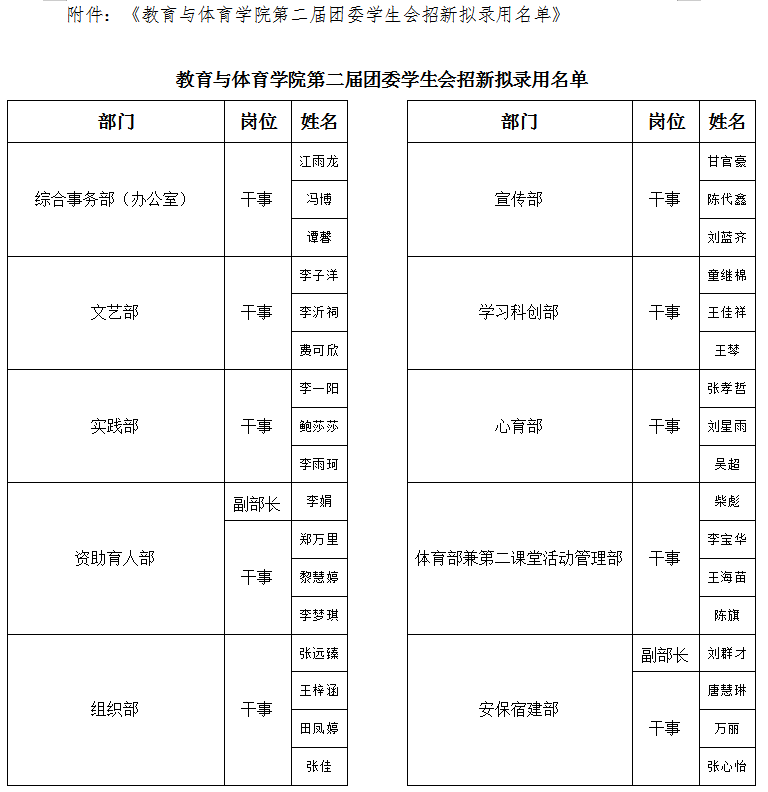 关于拟录用江雨龙等34名同学为学院第二届分团委学生会干部的公示