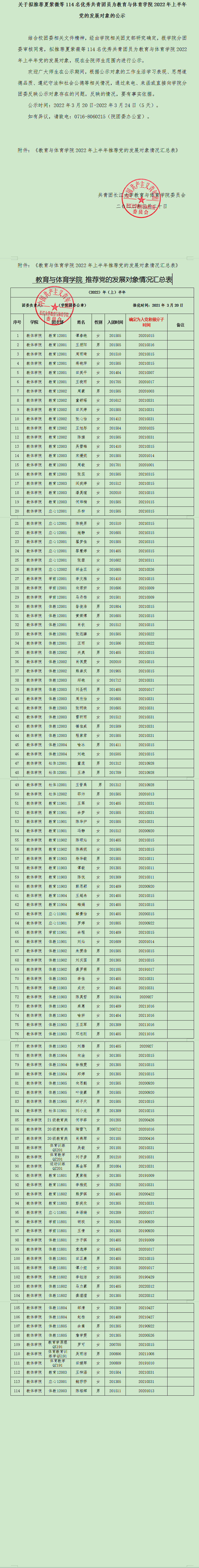 关于拟推荐夏紫微等114名优秀共青团员为我院2022年上半年党的发展对象的公示