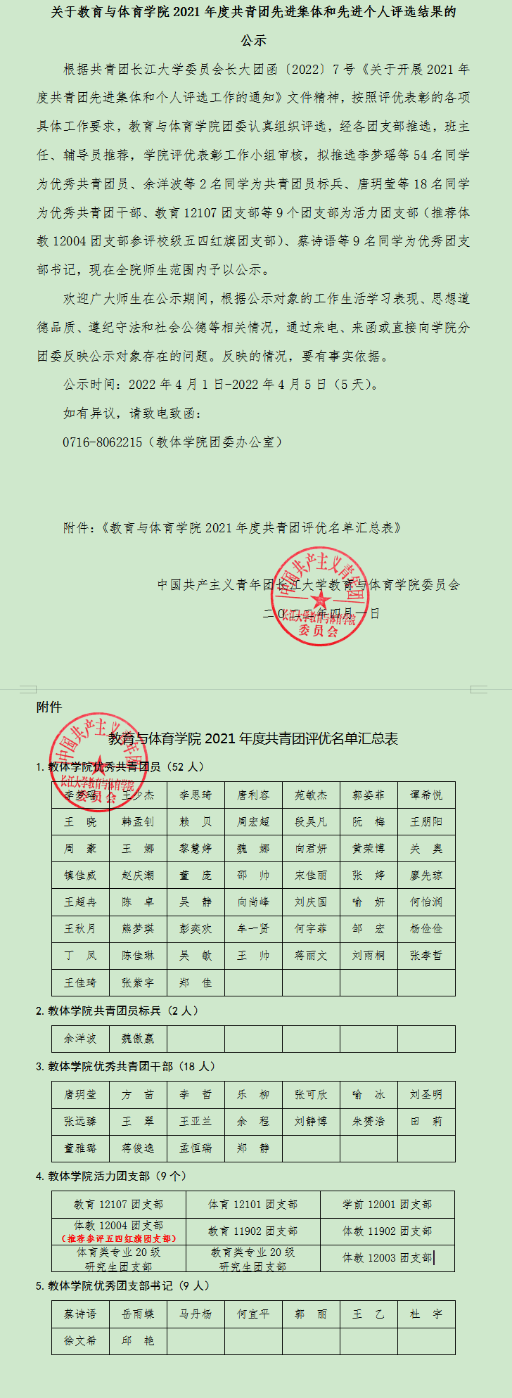 关于我院2021年度共青团先进集体和先进个人评选结果的公示